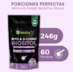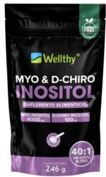 Wellthy Myo & D-Chiro Inositol en Polvo 246g. Mezcla Óptima 40:1, 4000mg Myo y 100mg D-Chiro Español, Ingredientes 100% Naturales, Gluten Free, Sugar Free, Vegan, Botlle Free.