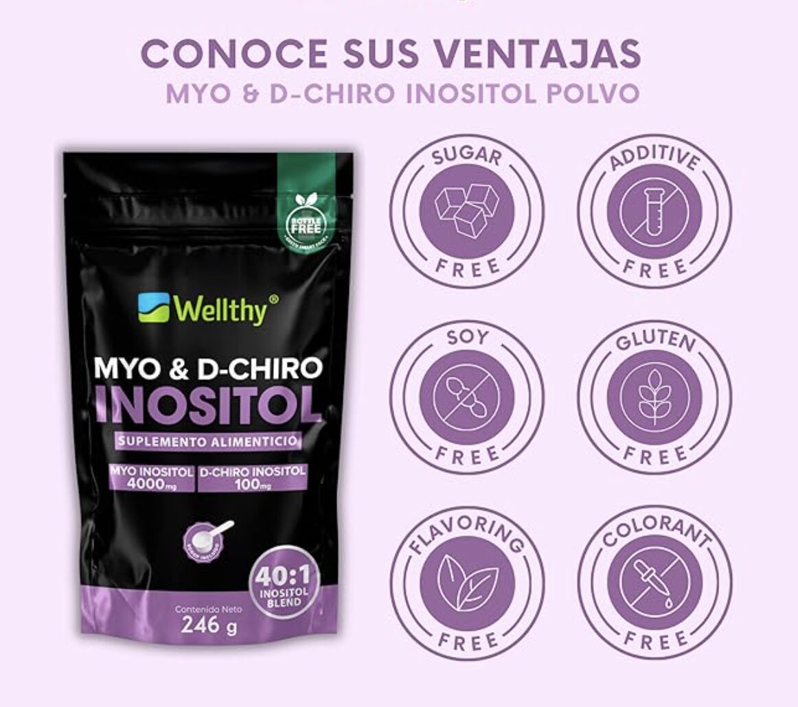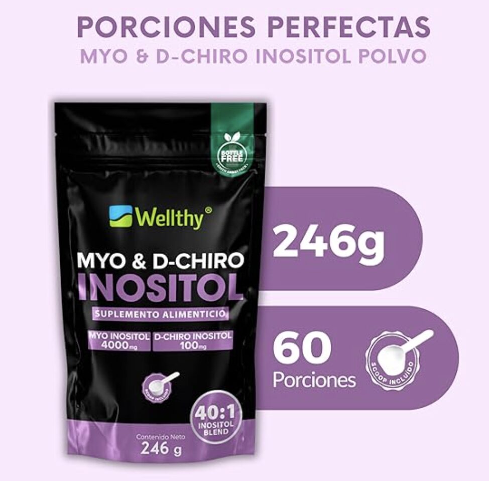 Wellthy Myo & D-Chiro Inositol en Polvo 130g. D-Chiro Inositol Español. Mezcla Óptima 40:1, 4000mg Myo Inositol y 100mg D-Chiro Inositol, Ingredientes 100% Naturales, Gluten Free, Sugar Free, Vegan, Bottle Free. $499.00